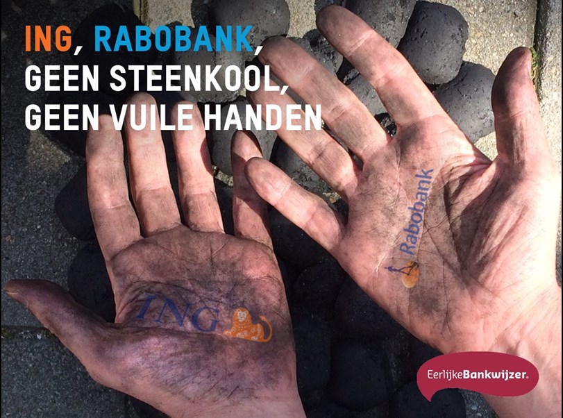 Vandaag vindt de jaarlijkse algemene aandeelhoudersvergadering van ING plaats. De Eerlijke Bankwijzer roept de ING-directie op om vandaag een duidelijke belofte te doen geen leningen meer te verstrekken aan kolenproducenten en veel meer te investeren in duurzame energiebedrijven om klimaatverandering daadwerkelijk aan te pakken. ING en Rabobank moeten geen nieuwe leningen aan kolenbedrijven verstrekken en hun investeringen in fossiele energiebedrijven zo spoedig mogelijk afbouwen. Daarnaast dienen beide banken transparant te worden over hun totale carbon footprint: inclusief die van de bedrijven waarin de banken investeren .ING en Rabobank moeten concrete stappen maken om bij te dragen aan een maximale temperatuurstijging van 1,5 graad Celsius.