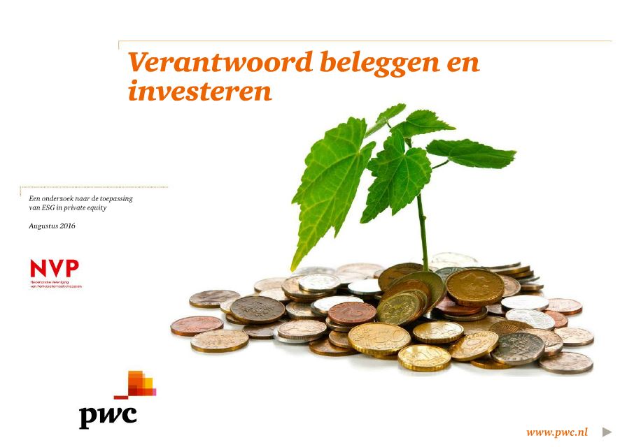 PWC heeft onderzoek gedaan naar verantwoord investerern bij beleggers in private equity. Hieruit blijkt dat deze beleggers (vooral pensioenfondsen) steeds meer eisen stellen op het gebied van duurzaamheid, beïnvloed door verschuivingen in het mondiale maatschappelijke verwachtingspatroon of uit eigen overtuiging. Daarnaast zijn ook private-equityfirma’s zelf zich steeds meer bewust van hun maatschappelijke verantwoordelijkheid, zo blijkt uit het onderzoek in deze publicatie naar duurzaam beleggen en investeren in het Nederlandse private equity landschap.