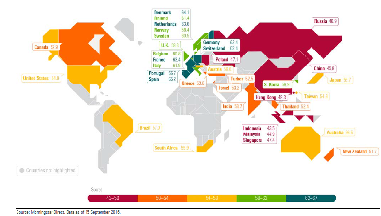 De Morningstar Sustainability Atlas biedt inzicht in de duurzaamheidsprestaties van beleggingsfondsen per land. Dat inzicht is voorhanden op verschillende, steeds fijnmaziger niveaus. Vandaag tonen we de verschillen op het niveau van milieu, sociaal beleid en goed ondernemingsbestuur.