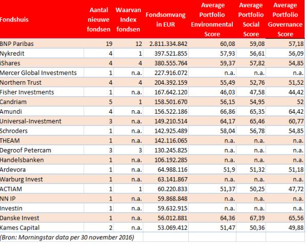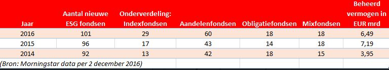 Een overzicht van de nieuwe duurzame fondsen in Europa toont aan dat het aanbod in de lift zit. Morningstar zet de duurzame fondsen die in 2016 nieuw op de markt kwamen voor u op een rij.