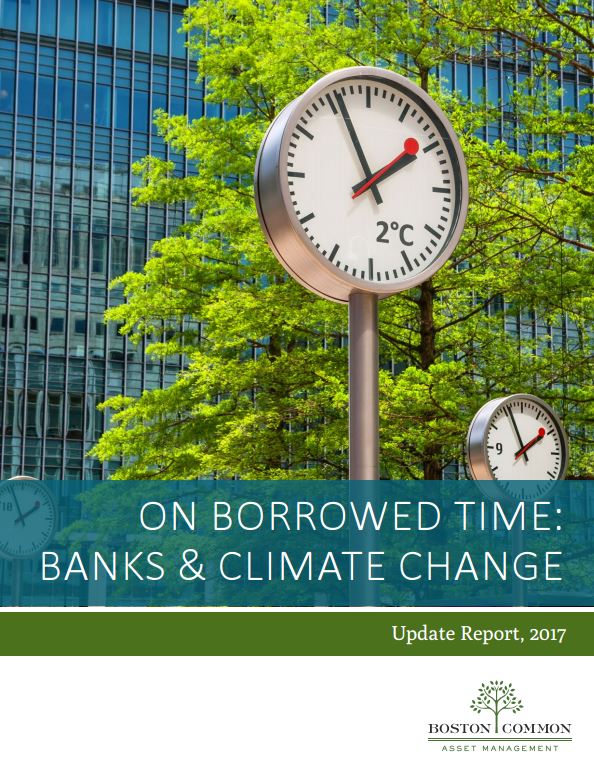 The report, backed by investors with $500 billion in AUM and led by Boston Common Asset Management, is a follow up to the 2015 report “Are Banks Prepared for Climate Change?”. Today’s analysis finds some notable progress by major banks over the last year including: