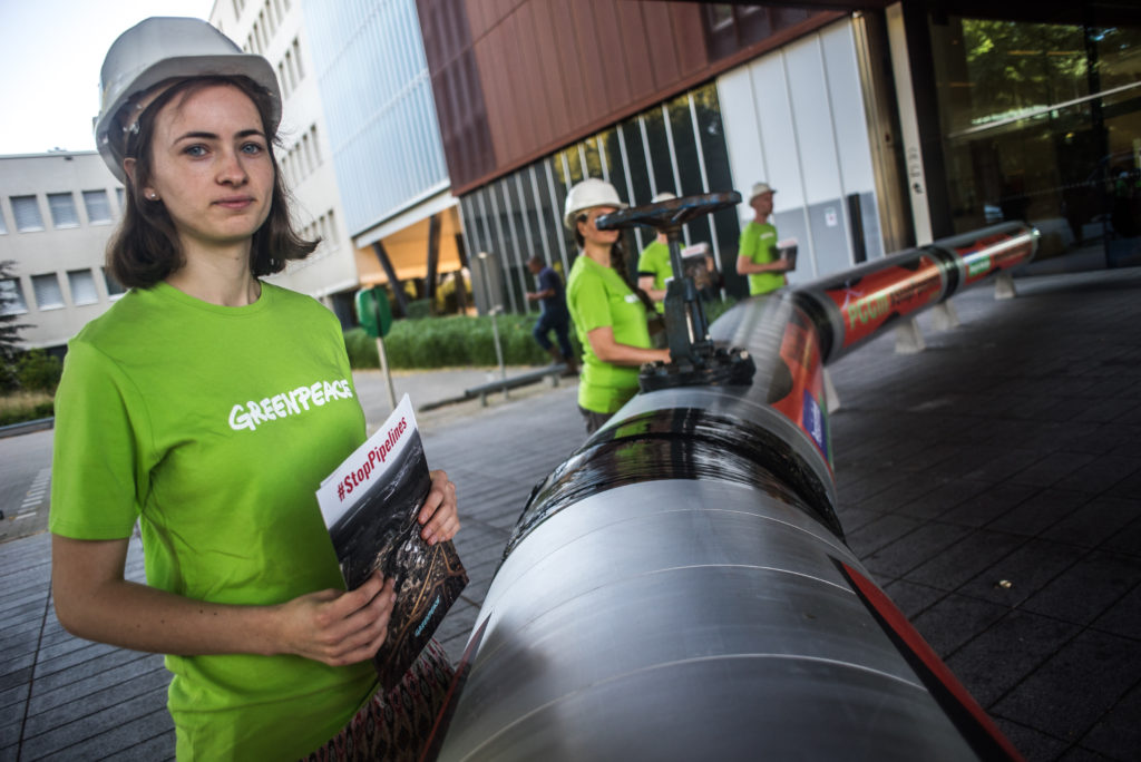 Zo’n 15 actievoerders van Greenpeace hebben een lekkende oliepijpleiding gelegd voor het hoofdkantoor van PGGM* en Pensioenfonds Zorg & Welzijn (PFZW). Hiermee willen de actievoerders laten zien wat het gevolg is van beleggen in teerzandolie. Deze vorm van oliewinning is zeer vervuilend en omstreden. Er worden kilometerslange pijpleidingen door Canada en de VS voor aangelegd. Gevolgen: ernstige milieuvervuiling door lekkages en verwoesting van eeuwenoude bossen en landschap.