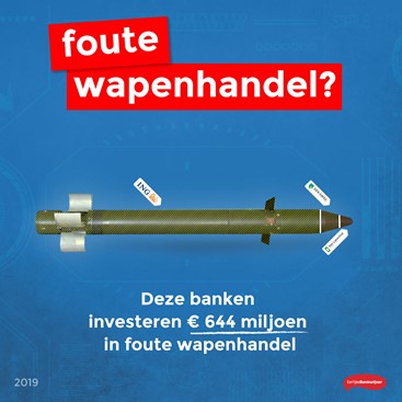 De drie banken investeren in grote bedrijven als Raytheon, Boeing, General Dynamics en nog tien andere bedrijven. Zij leveren gevechtsvliegtuigen, tanks en bommen aan onder meer Saoedi-Arabië en de Verenigde Arabische Emiraten, die op dit moment betrokken zijn bij de oorlog in Jemen. ING investeert 510 miljoen euro in 10 wapenbedrijven. Bij eerder onderzoek van de Eerlijke Bankwijzer, in 2009, had ING dit ook niet op orde. ABN Amro investeert 102 miljoen euro in 9 bedrijven en Van Lanschot 31 miljoen euro in 6 bedrijven. Uit het onderzoek van de Eerlijke Bankwijzer blijkt verder dat Rabobank, Volksbank, NIBC en Triodos niet in de onderzochte wapenbedrijven investeren. “Dat van ING, ABN Amro en Van Lanschot nog steeds miljoenen naar bedrijven gaan die wapens leveren aan landen die mensenrechten schenden moet stoppen”, aldus Cor Oudes.