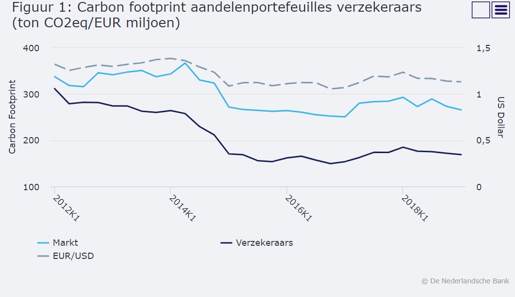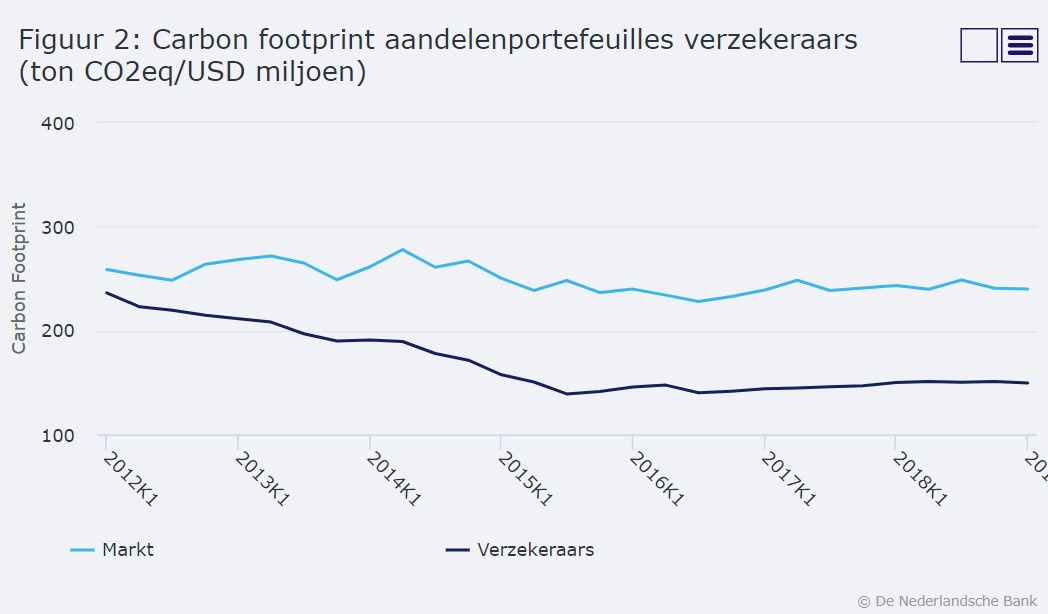 Het aandelenbezit van verzekeraars is relatief duurzaam. Verzekeraars beleggen gemiddeld genomen minder in CO2-intensieve sectoren. Bij het meten van de ontwikkeling van de CO2-voetafdruk over de tijd is zorgvuldigheid geboden. Wisselkoersschommelingen kunnen invloed hebben op de uitkomsten. Verdere ontwikkeling van meetmethodes is nodig om de verduurzaming van de financiële sector beter in kaart te brengen.