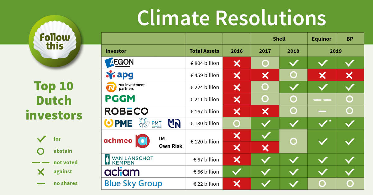 De Follow This klimaatresoluties steunen oliebedrijven om korte-, middellange en langetermijndoelen op te stellen die aansluiten bij het Klimaatakkoord van Parijs. En om hun investeringsbeleid om te gooien van fossiel naar duurzaam. “De olie- en gasindustrie kan het Klimaatakkoord van Parijs maken en breken,” zegt Van Baal. “We hebben ze keihard nodig, maar ze investeren nog nauwelijks in duurzame energie.”