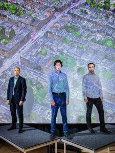 Onderzoekers Olindo Isabella, Maarten Verkou en Hesan Ziar voor een gemodelleerde projectie van Amsterdam.