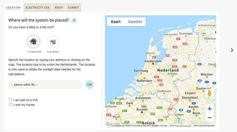 Nadat je de locatie hebt ingevoerd, stelt het portaal vragen over de eigenschappen van het huis of gebouw waar de panelen geplaatst gaan worden, zoals de hellingshoek van het dak en in welke windrichting het huis gebouwd is. Die eigenschappen hebben een grote invloed op de prestatie van de zonnepanelen. Isabella: ‘Ons model kan de zonneproductie nauwkeurig voorspellen, ongeacht de richting van het dak, en of het dak plat of gekanteld is. Hoewel we vaak horen dat een dak op het zuiden ideaal is voor het maximaliseren van de zonneproductie, is de realiteit dat zonne-energie onder verschillende hoeken en hellingen kan worden geproduceerd. Zelfs in minder optimale opstellingen kan de terugverdientijd erg meevallen.’
