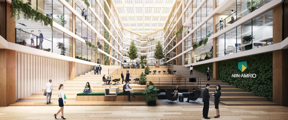 In samenwerking met vastgoedontwikkelaar EDGE en de oorspronkelijke architect van het gebouw, BroekBakema, gaat ABN AMRO het uit 1980 daterende kantoorgebouw aan de Foppingadreef in Amsterdam-Zuidoost ombouwen tot een hypermoderne, duurzame werkplek. De nieuwe ‘Foppingadreef’ zal 75% minder energie verbruiken dan het huidige gebouw. Het wordt meer dan alleen een plek om een laptop aan te sluiten en te gaan zitten werken. Versneld door Covid-19 wordt thuiswerken de nieuwe standaard. De nieuwe basis van ABN AMRO wordt een plek om ideeën uit te wisselen, collega’s te ontmoeten en over nieuwe diensten te brainstormen. En bovenal wordt het een plek waar gezondheid en welzijn vooropstaan.