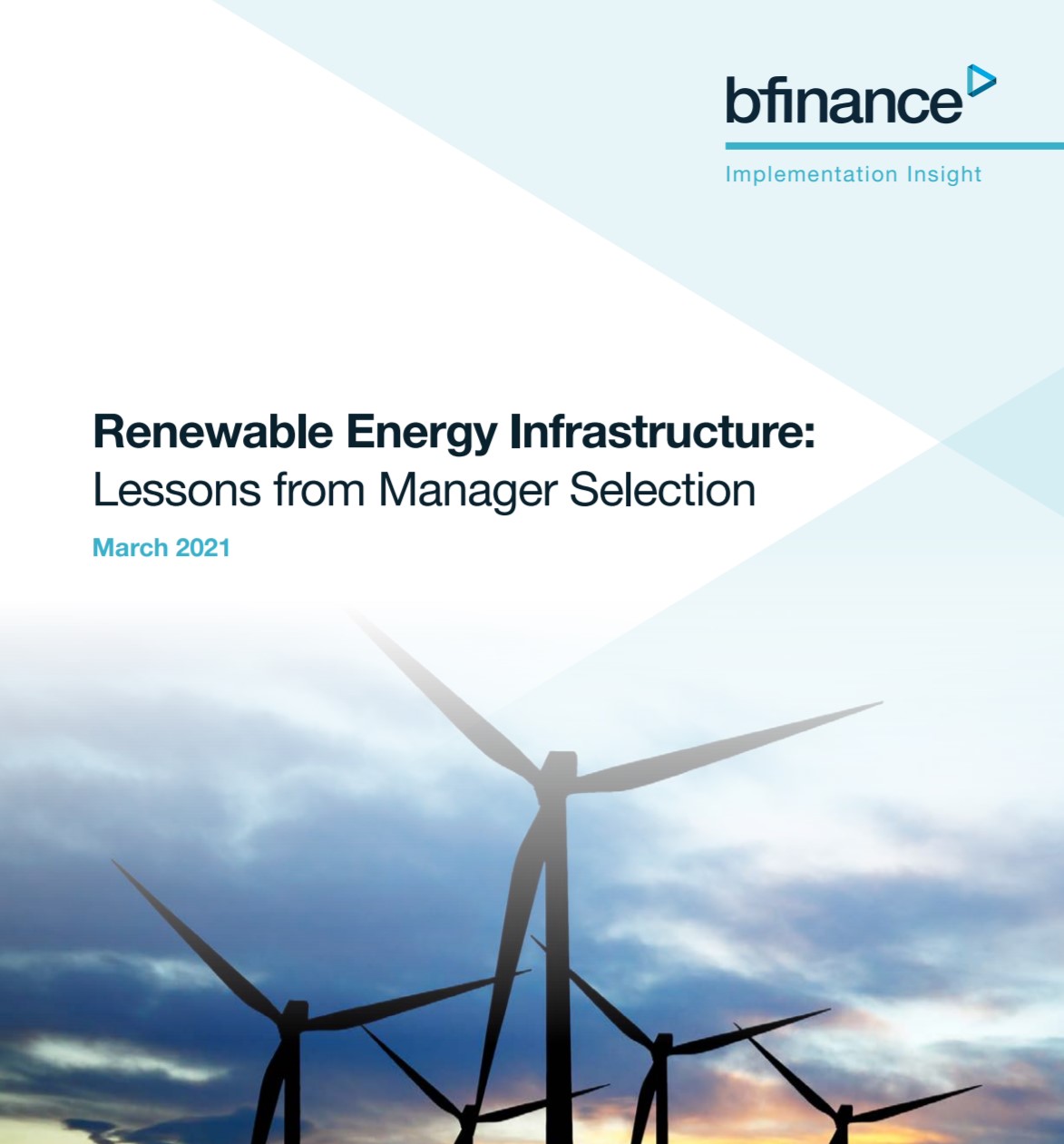 Anish Butani, Senior Director Private Markets bij bfinance zegt: “Hoewel duurzame energiebronnen de toekomst lijken te zijn voor de wereldwijde energieproductie, gaan we nu een nieuwe fase in voor de opkomende beleggingscategorie van duurzame energie-infrastructuur. De economische aspecten van deze asset class zijn fundamenteel aan het veranderen door de algemene afschaffing van subsidies en de ontwikkeling van technologieën. Met meer concurrentie dan ooit, zowel vanuit het oogpunt van fondsenwerving als vanuit beleggingsoogpunt, moeten managers creatief zijn en zich aanpassen aan het nieuwe klimaat.”