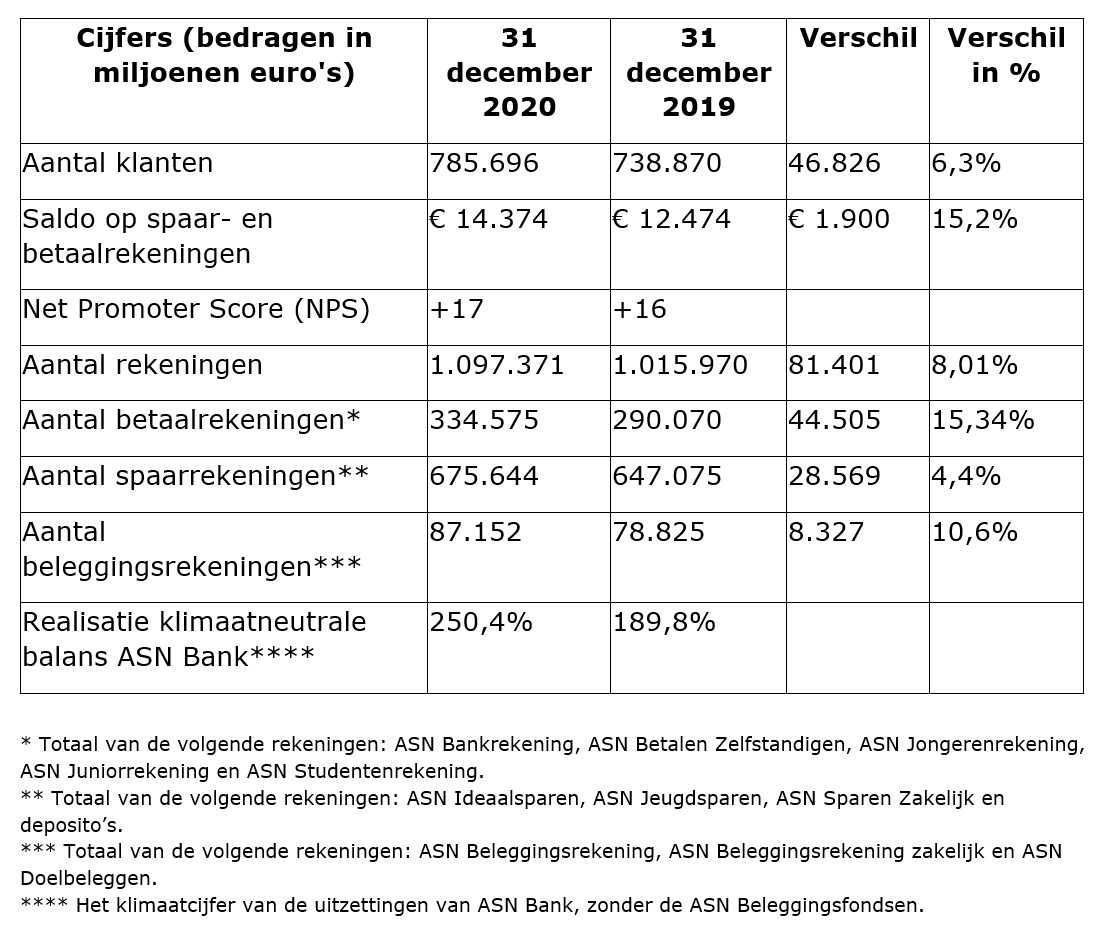 ASN Bank, onderdeel van de Volksbank, heeft in 2020 een record aantal nieuwe klanten mogen verwelkomen. Het afgelopen jaar groeide het klantenaantal met netto 46.826, tot in totaal 785.696 klanten op 31 december 2020. Daarmee realiseerde ASN Bank de grootste groei sinds 2012. Dankzij de aanhoudende klantgroei kan ASN Bank nog meer duurzame vooruitgang op het gebied van klimaat, biodiversiteit en mensenrechten realiseren.