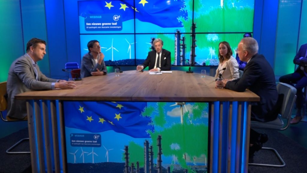Sinds enkele weken kan elke grote onderneming of investeerder in de EU Taxonomie nakijken welke eigen activiteiten ‘duurzaam’ mogen heten. Maar de spelregels zijn complex, niet iedereen begrijpt ze nog. Bovendien zijn er enkele hoge politieke hobbels. De ‘zandweg’ naar duurzame investeringen is misschien wat minder hobbelig geworden, maar nog lang niet geasfalteerd. Op het webinar ‘Een nieuwe groene taal’ discussieerden bedrijven, investeerders, een natuurorganisatie en een Europarlementariër over het nut en de werkbaarheid van de nieuwe spelregels voor duurzaamheid. Bas Eickhout (Groen Links), die namens het Europarlement ook eerste onderhandelaar (‘rapporteur’) was op dit onderwerp, heeft het over een tweetrapsraket: “Eurocommissaris Frans Timmermans werkt aan de klimaatwetgeving voor de 55% emissiereductie in 2030. De taxonomie zorgt ervoor dat ook al het geld in die richting gaat. Alleen samen kunnen ze ervoor zorgen dat de EU in 2050 klimaatneutraal is.”
