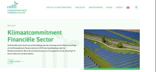 De nieuwe website bevat een uitgebreide toelichting van het klimaatcommitment, de verschillende publicaties die sinds de ondertekening van het commitment zijn verschenen, een overzicht van de organisaties (koepels en bedrijven) die het commitment hebben ondertekend en nieuwsberichten over de stappen die de financiële sector zet om de klimaatverandering tegen te gaan.