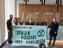 Zo’n 20 mensen zijn onder de vlag van Extinction Rebellion aanwezig in de lobby van de Amsterdam Symphony toren aan het Gustav Mahlerplein in Amsterdam, waar APG, de pensioenuitvoerder van ABP, is gevestigd. De actievoerders hebben aangegeven dat ze bereid zijn te overnachten en niet weg te gaan totdat hun eis is ingewilligd. Daarvoor hebben ze tenten en slaapzakken meegenomen. Ze lopen met de actie een aanzienlijk risico om gearresteerd te worden. “De wereld bevindt zich in een klimaatnoodtoestand. We zijn het aan onszelf en alle komende generaties verplicht om er niet een beetje, maar álles aan te doen dat de wereld leefbaar blijft. Daarvoor offeren we met liefde onze vrijheid op, voor zolang als het nodig is, ”aldus Petra Verdonk, universitair hoofddocent en dus ook ABP-pensioendeelnemer. Ook Fossielvrij NL steunt de actie: “Al vanaf 2014 voeren we samen met pensioendeelnemers campagne voor een fossielvrij ABP. Het ABP legt alle rapporten, brieven en oproepen naast zich neer, wij staan dus volledig achter de deelnemers die dit niet langer accepteren. Er staat te veel op het spel,” aldus Liset Meddens, directeur Fossielvrij NL.