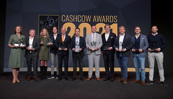 De winnaars die uit handen van BeleggersFair-dagvoorzitter Charles Groenhuijsen een Cashcow Award 2021 uitgereikt kregen, zijn: