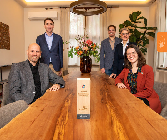 Met VP Capital kent de award een eerste winnaar van formaat. De investeringsmaatschappij van de Belgisch-Nederlandse familie Van Puijenbroek, groot geworden in de werkkledingindustrie, geldt als vaandeldrager van het duurzaam investeren. VP Capital is een Carbon Neutral Company, recent B Corp gecertificeerd en heeft zich – net als Antea Group – gecommitteerd aan het Science Based Targets-initiatief. Het family-office beheert inmiddels een brede portefeuille met investeringen in bedrijven als Batenburg Techniek, Aquaporin, Accsys Technologies en diverse impactfondsen. VP Capital heeft zich ten doel gesteld om de volledige portefeuille te verduurzamen.