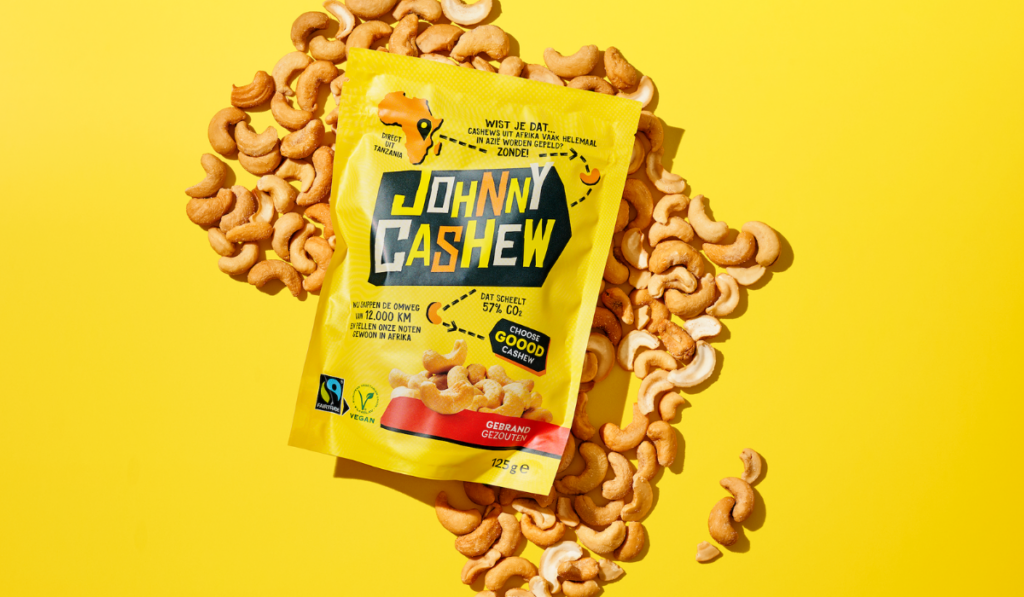 Het bedrijf, in 2020 opgericht door Hayo de Feijter en Roel van de Weijer, heeft de pijlen gericht op de onnodige omreis van cashewnoten. Want hoewel de helft van de wereldwijde cashews op het Afrikaanse continent groeien, reist meer dan 90 procent hiervan eerst naar Azië om daar gepeld te worden. Dit resulteert in een onnodige omreis van 12.000 tot 25.000 kilometers – en de bijbehorende uitstoot – voordat ze het land van consumptie bereiken. Door cashews lokaal in Tanzania te pellen en deze rechtstreeks naar Nederland te importeren, heeft Johnny Cashew de afgelopen paar jaar al meer dan 1.000.000 transportkilometers bespaard. Dit doet het merk samen met ruim 1.100 Fairtrade-gecertificeerde boeren in Tanzania en de pelfabriek van Mama Cashew, waar zo’n 600 banen werden gecreëerd. Deze cashewnoten zijn onder meer verkrijgbaar bij Albert Heijn, Picnic, Ekoplaza, de Wereldwinkels en bij Lidl onder het duurzame merk Way to Go.
