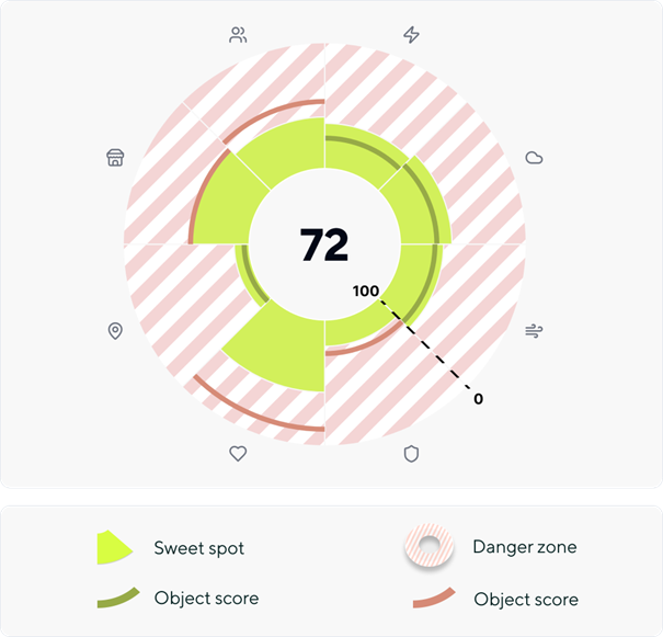 De Sustainability Index visualiseert met het Donutmodel in één oogopslag een duidelijk overzicht van de sterke en zwakke punten van elk vastgoedobject. Thema’s die goed scoren, bevinden zich in de binnenste ring (‘sweet spot’), terwijl zwakkere punten in de buitenste ring (‘danger zone’) vallen. Cherryl Djoegan, Head of Sustainability bij Envalue legt uit: “Onze Sustainability Index is niet nog een extra label. Het is een strategisch hulpmiddel dat investeerders en vastgoedeigenaren helpt om slimme keuzes te maken om de toekomstbestendigheid en marktpositie van de vastgoedportefeuille te versterken. Door nauwkeurig inzicht te geven in de prestaties van gebouwen, laat de index precies zien waar de grootste kansen liggen voor verduurzaming. Kortom, actiegericht en effectief je middelen inzetten voor de meest impactvolle verbeteringen. Duurzame gebouwen zijn immers aantrekkelijker voor gebruikers van vastgoed en beleggers, wat kan leiden tot hogere opbrengsten, waardevermeerdering en concurrentievoordelen.”