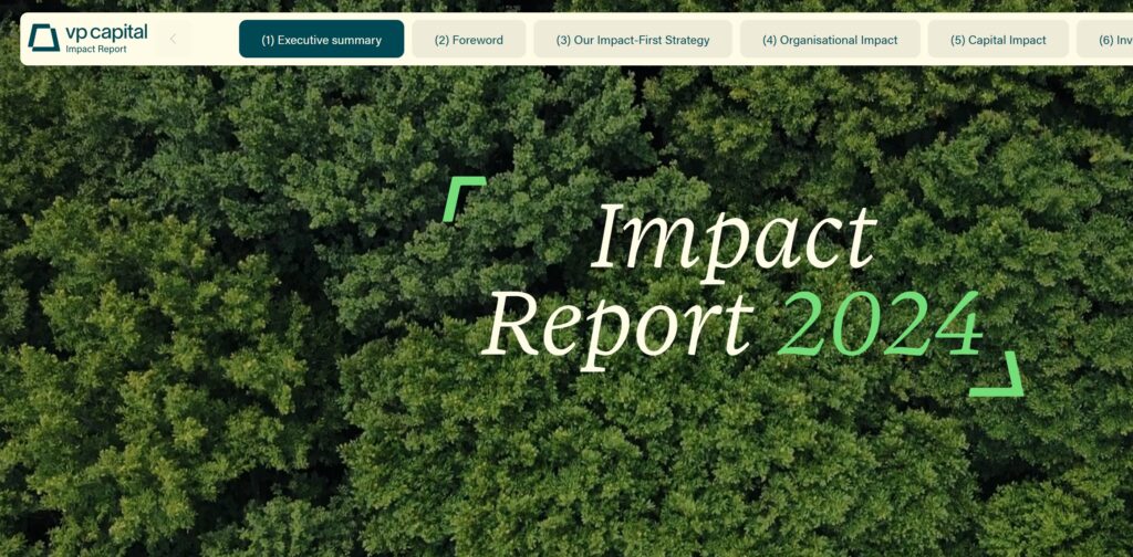 VP Capital, een single family office met ervaring in verantwoord investeren en een portefeuille van meer dan 60 investeringen verspreid over meerdere beleggingscategorieën, publiceert vandaag zijn eerste Impact Report sinds de invoering van de nieuwe impact-first strategie in 2024. In de afgelopen jaren rapporteerde de organisatie al transparant over haar voortgang op het gebied van impact investing. Met deze publicatie markeert VP Capital een nieuw hoofdstuk: verantwoording over resultaten binnen een versnelde impactgerichte aanpak.