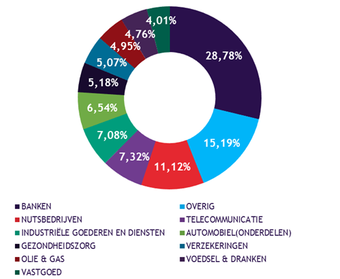 Naar onze mening is het totale aanbod van groene obligaties in het creditsegment te beperkt voor een zelfstandige gediversifieerde portefeuille. Vanwege het beperkte aanbod en kleine aantal uitgegeven obligaties is er slechts beperkt ruimte om waarde toe te voegen via selectie van individuele uitgevende instellingen en sectoren. Dit is te zien in de diagrammen hieronder, waarin de Euro iBoxx Corporate benchmark en de groene obligaties van die benchmark zijn uitgesplitst per sector.