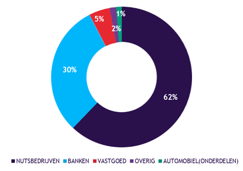Deze diagrammen laten zien dat de banksector in beide samenstellingen een min of meer gelijk marktgewicht heeft, maar dat groene obligaties worden gedomineerd door nutsbedrijven.
