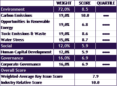 We geven de issuer Iberdrola een score van 91. De onderneming krijgt namelijk een topscore vanuit MSCI, omdat het opereert in de renewable energy sector, actief kolenfaciliteiten uitfaseert, met 66% van haar operaties geen uitstoot veroorzaakt en progressief is als het gaat om target setting en reduceren van uitstoot (carbon neutraal in 2050). Daarnaast ontvangt Iberdrola van ons een analystenscore – positief geselecteerd, omdat het bedrijf in de energiesector als het gaat om haar bijdrage aan de energietransitie. Daarmee is de score hoger dan hun green-bondscore.