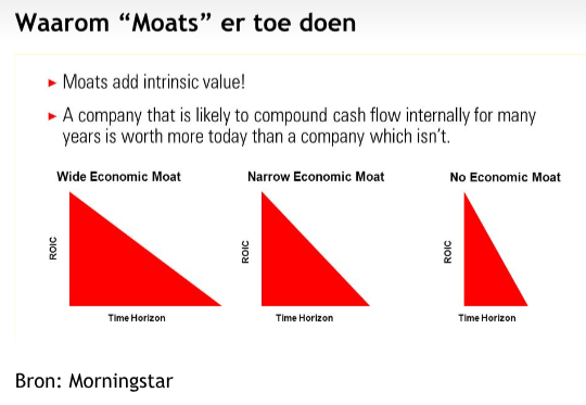 Bij het maken van een fundamentele analyse van een onderneming is het belangrijk om haar concurrentievoordeel (de zogenaamde moat) als basis te nemen voor de vaststelling van de verwachte waardering op de lange termijn. Er wordt algemeen aangenomen dat indien een onderneming een duurzaam concurrentievoordeel geniet, die onderneming beschermd is tegen concurrerende krachten en een langetermijninvesteringsopbrengst kan realiseren die hoger is dan de kapitaalskosten (ook wel “wide moat” genoemd). Geen of weinig concurrentievoordeel (een “no” of “weak moat”) resulteert in een lagere waardering van de onderneming op de langere termijn.
