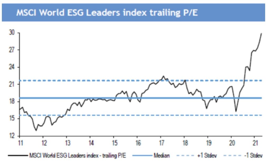Toch zijn wij altijd op onze hoede als wij trends waarnemen die worden gestuurd door een willekeurige instroom van beleggers in een beperkt beleggingsuniversum. Dit leidt onvermijdelijk tot onhoudbare overwaardering en de daaruit voortvloeiende teleurstelling over de gerealiseerde rendementen van beleggers. We zien nu al dat de waardering van ESG-favorieten aanzienlijk is gestegen en dat die stijging niet alleen kan worden toegeschreven aan veranderingen in de vooruitzichten van bedrijven op de langere termijn.