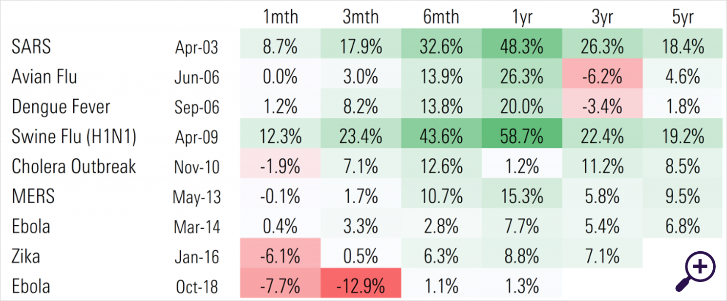 Beleggers reageren doorgaans op epidemieën, maar het langetermijnbeeld is positief