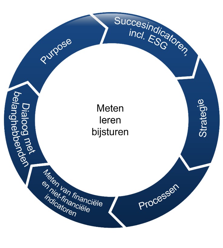 Het begint bij een heldere missie en visie, ook wel de “purpose” van een organisatie genoemd. Deze omschrijft het bestaansrecht van een bedrijf en zijn rol in de maatschappij. Alle verdere bedrijfsactiviteiten vloeien hieruit voort. Daarbij is het belangrijk dat purpose, strategie, processen, de besturing van het bedrijf en controle en rapportage op elkaar aansluiten. Door tussentijdse toetsing of de eigen ideeën aansluiten bij de belangen van de interne en externe betrokkenen, kan het bestuur tijdig ingrijpen om op koers te blijven. Meten, leren en bijsturen.