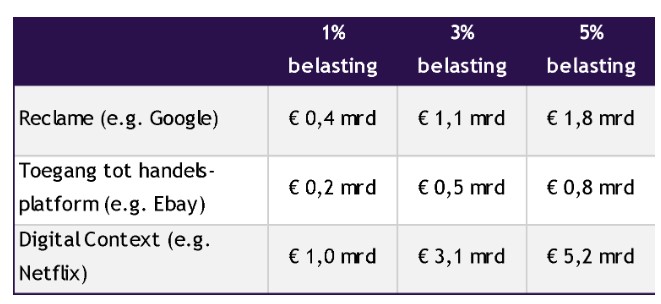 - Een digitaks (gericht op bijvoorbeeld Facebook en Google);
