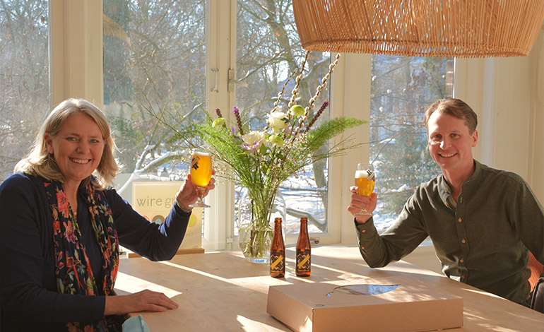 Foto: Tera en Ronald aan de keukentafel van de Home of Conscious Wealth – proosten op de behaalde impact