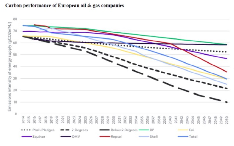 Dit jaar is er een golf aan belangrijke mededelingen over het klimaat van Europese olie- en gasmaatschappijen over beleggers heen gestort. Daar zat een groot scala aan beloftes tussen over net-zero koolstofemissie. Ze lopen uiteen van “ernaar streven op zijn laatst in 2050 een CO2-neutraal energiebedrijf te zijn” tot “het zekerstellen van een concurrerend en veerkrachtig businessmodel in de energietransitie, dat zorgt voor waardecreatie op de lange termijn en overeenstemt met het Klimaatakkoord van Parijs”. Een en al goede voornemens en mooie woorden, en dat alles gegoten in prachtig vormgegeven marketingmateriaal.