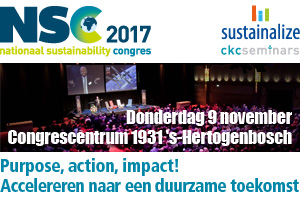 17de editie van het jaarlijkse grootste duurzaamheidscongres (sinds het jaar 2000) georganiseerd door adviesbureau Sustainalize en CKC Seminars. Thema is dit keer: “Purpose, Action, Impact!”
