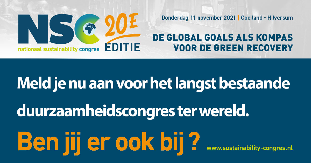 Speciale 20ste jubilieumeditie van het jaarlijks grootste duurzaamheidscongres in Nederland en tevens het langst bestaande duurzaamheidscongres ter wereld!