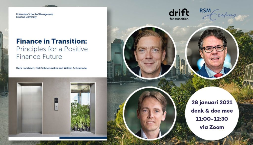 Sustainable economic development – despite three decades of trying to make it work, this strategy has failed to stop the climate and biodiversity crisis in its tracks. Is there an alternative? In their recently published book “Finance in Transition” Derk Loorbach, Dirk Schoenmaker and Willem Schramade make the case for fundamental change: from traditional to transition finance. On 28 January, DRIFT and the Rotterdam School of Management are hosting a Zoom webinar to explore this topic: an unique opportunity to speak to the authors about their story and discuss fundamental change in finance with other change-makers from various organisations. Are you in?
